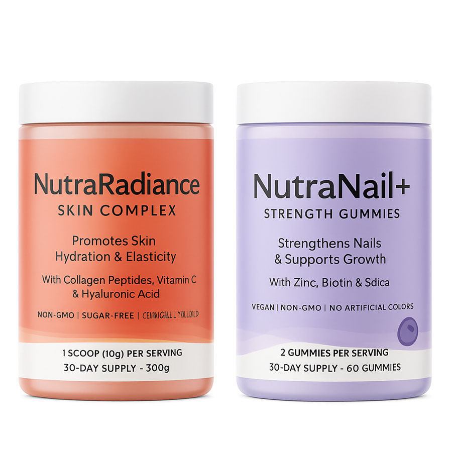 Elevate your self-care routine with the ultimate skin and nail supplement duo. NutraRadiance Skin Complex hydrates, firms, and brightens your skin from within, while NutraNail+ Strength Gummies fortify and nourish your nails for stronger, healthier growth. Together, they help you look and feel effortlessly radiant.